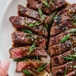 - Serve: Pour the thickened ginger teriyaki sauce generously over the grilled steaks. Garnish with chopped green onions if desired, and serve with steamed rice as a delicious accompaniment.