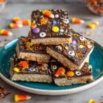 I store leftover Halloween bark in an airtight container at room temperature — it stays fresh and crunchy for up to a week. Just make sure to keep it somewhere cool and dry, away from direct sunlight or heat that could cause the chocolate to melt or bloom.