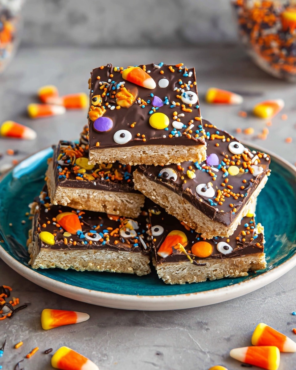 • White Chocolate Twist: I once tried melting white chocolate over the marshmallow layer instead of semi-sweet chocolate — it felt more festive and paired beautifully with orange and black candies.