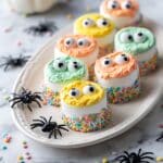 Aside from candy eyes and sprinkles, try edible markers to draw on faces, use colored sugar, mini chocolate chips for fangs, or even tiny licorice strips as smiles or mustaches. The more creative, the better!