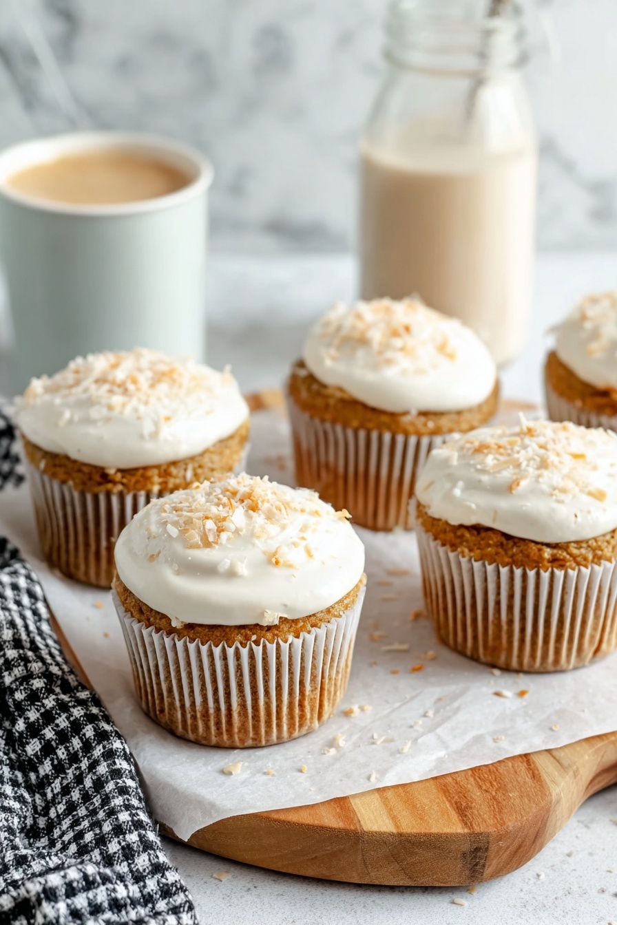 Once the muffins are completely cool, it’s glaze time. Grab your softened light cream cheese and microwave it for 10-20 seconds until it’s a bit warmed and easier to stir. Add in powdered sugar, vanilla, and about a tablespoon of almond milk, stirring until you get a smooth consistency that’s not too runny or thick. Dip each muffin top into the glaze, place back on the wire rack, and if you want, sprinkle some shredded coconut or chopped nuts on top for that final touch. My family goes crazy for this step — it feels like a little celebration every time.