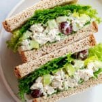A healthy and refreshing chicken salad made with chopped cooked chicken, crunchy celery, sweet red grapes, and toasted almonds, all tossed in a creamy Greek yogurt dressing with Dijon mustard and fresh lemon juice. Perfect as a light meal or a satisfying snack, served on bread, wraps, crackers, or over a bed of lettuce.