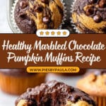 These Healthy Marbled Chocolate Pumpkin Muffins are a delicious blend of autumn flavors and rich chocolate swirls, made with wholesome ingredients like pumpkin puree, whole wheat pastry flour, and natural sweeteners. Perfectly moist, subtly spiced, and beautifully marbled, these muffins make a nutritious snack or breakfast treat.