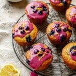 These Healthy Lemon Poppy Seed Muffins are a bright and flavorful treat made with wholesome ingredients like whole wheat flour, fresh lemon zest, and honey. Perfect for breakfast or a snack, they offer a moist texture, a subtle tang from Greek yogurt and lemon juice, and a delightful crunch from poppy seeds. Topped with a tangy lemon-blueberry glaze, these muffins are both nutritious and delicious, making them an ideal healthy baked good that satisfies your sweet tooth without compromising on natural ingredients.