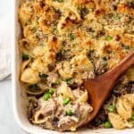 A healthy and comforting Tuna Noodle Casserole full of tender pasta, savory mushrooms, flaky tuna, and peas, all baked in a creamy parmesan sauce topped with a crispy breadcrumb layer. This recipe offers easy modifications for dairy-free and gluten-free diets, making it a versatile weeknight dinner option.