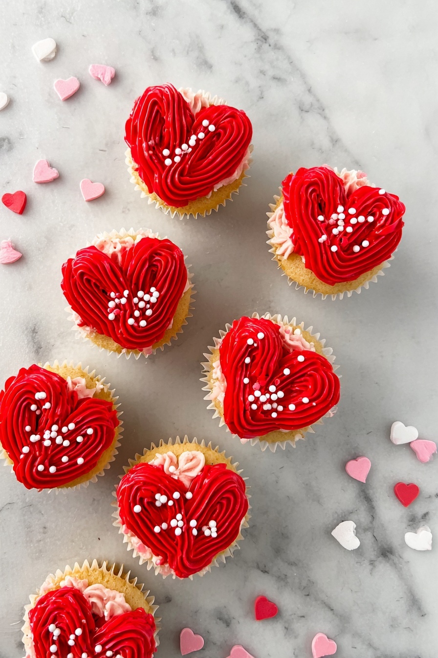 I love that this Heart-Shaped Cupcake Recipe flexes to suit your mood or the season. I often switch up frosting flavors and decorations depending on the event or even what I have on hand. Don’t be afraid to make it your own!