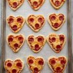 - Adding Pepperoni: Place 3 to 4 mini pepperoni hearts on top of the cheese on each mini pizza to create a charming heart-themed topping.