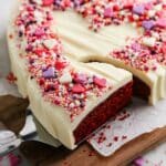 This delightful heart-shaped cake is a perfect dessert for special occasions like Valentine’s Day or anniversaries. Made with rich cocoa, vibrant red food coloring, and enveloped in creamy, smooth cream cheese frosting, this cake not only looks stunning but tastes heavenly. The layered design with a round and square cake combined into a heart shape adds a charming and festive touch to your celebration.