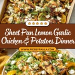 This Sheet Pan Herby Lemon Garlic Chicken and Potatoes recipe offers a vibrant and flavorful one-pan meal combining juicy marinated chicken thighs with tender roasted fingerling potatoes, caramelized lemon slices, and onions. The dish is finished with a bright and tangy garnish of crumbled feta, fresh herbs, and optional red pepper flakes, making it an easy yet impressive dinner perfect for busy weeknights or casual gatherings.