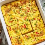 - Bake: Cover the casserole dish with foil and bake in the preheated oven for 20 minutes. Remove the foil and continue baking for an additional 15-20 minutes, or until the eggs are set and the top is golden brown. Once baked, remove the casserole from the oven and let it rest for 10 minutes before serving to allow it to firm up and cool slightly.