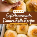 These homemade dinner rolls are soft, fluffy, and slightly sweetened with honey for a perfect dinner accompaniment. Easy to make with simple ingredients, these rolls are brushed with egg wash and sprinkled with flaky salt for a beautiful golden finish and delightful texture.