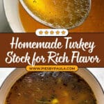 This homemade turkey stock recipe delivers a rich, flavorful base perfect for soups, stews, and sauces. Made from roasted turkey wings and aromatic vegetables, it’s simmered slowly to extract deep flavors, resulting in a comforting and versatile broth that’s as wholesome as it is delicious.