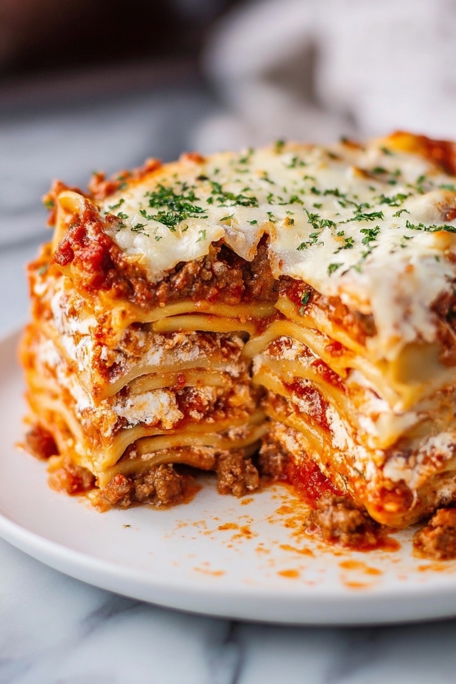 After the lasagna cools, I wrap leftover portions tightly with plastic wrap and store them in airtight containers in the fridge. This keeps it fresh for about 3-4 days. The flavors really deepen after a day or two, so leftovers can be even better!
