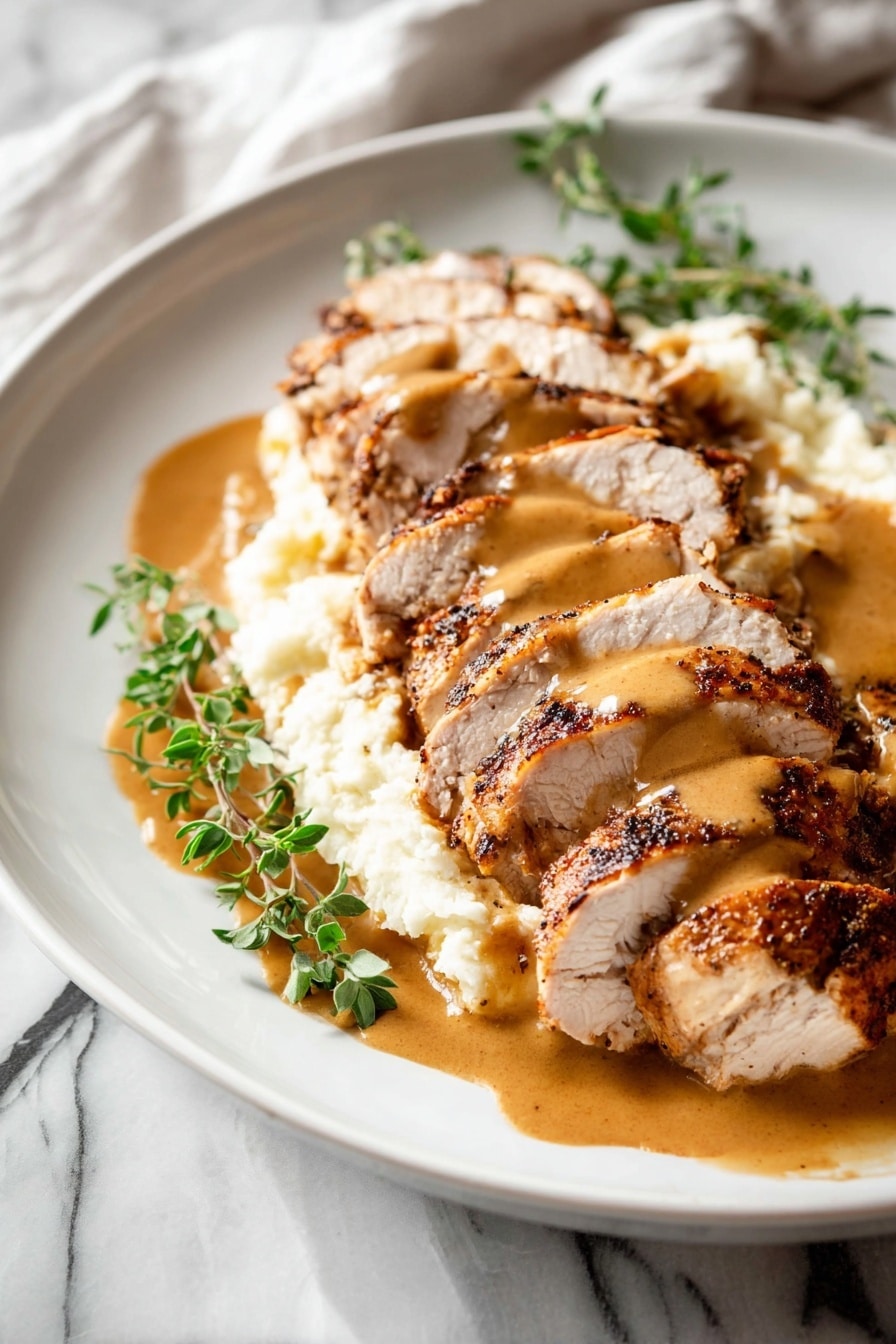 I like to sprinkle freshly chopped parsley or thyme over the sliced turkey and gravy for a fresh pop of color and flavor—it really brightens the dish and makes it look restaurant-worthy even on a busy weeknight.