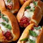 These Easy Italian Meatball Sub Sandwiches combine juicy, tender homemade meatballs with a rich and flavorful marinara sauce, all tucked inside crusty sub rolls and topped with a blend of molten provolone and fontina cheeses. Perfectly broiled for that irresistible gooey finish, this classic Italian-American sandwich is a comforting and satisfying meal that’s simple to prepare.