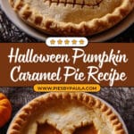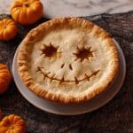 This Jack Skellington-Inspired Pumpkin Caramel Pie is a spooky and delicious treat perfect for Halloween or fall gatherings. Featuring a creamy pumpkin filling infused with warm spices, sweetened condensed milk, and swirled with decadent caramel sauce, this pie is encased in a flaky double crust with a creative Jack Skellington face design cut into the top crust. Baked to perfection with a careful two-temperature method, it combines festive presentation with comforting autumn flavors.