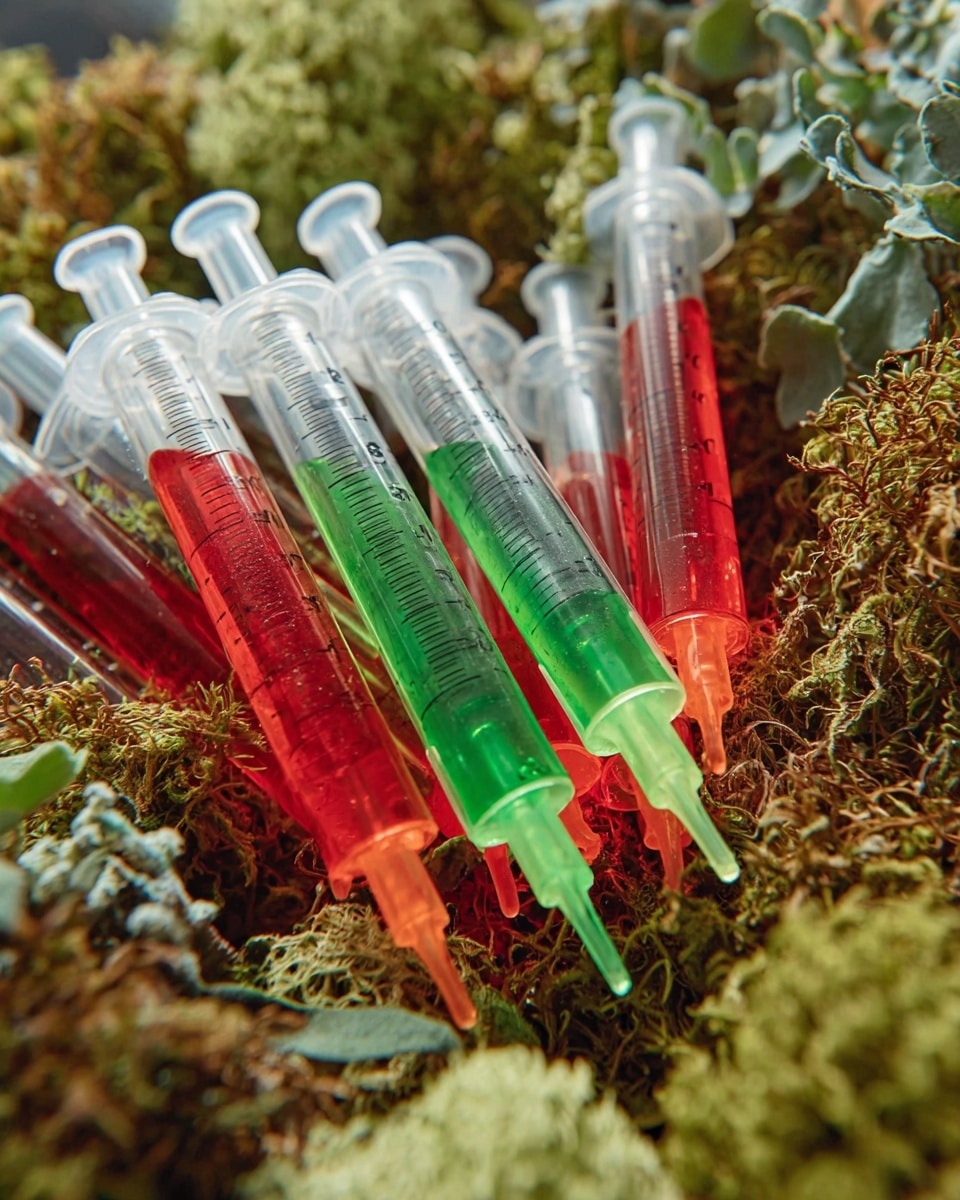 For birthdays or Halloween, I’ve frozen the syringes in a clear container filled with ice and colorful fruit slices for a stunning “liquid medicine” vibe. Another time, I placed the syringes upright in a foam block wrapped in themed paper—it looked like a mini pharmacy display and was a total conversation starter!