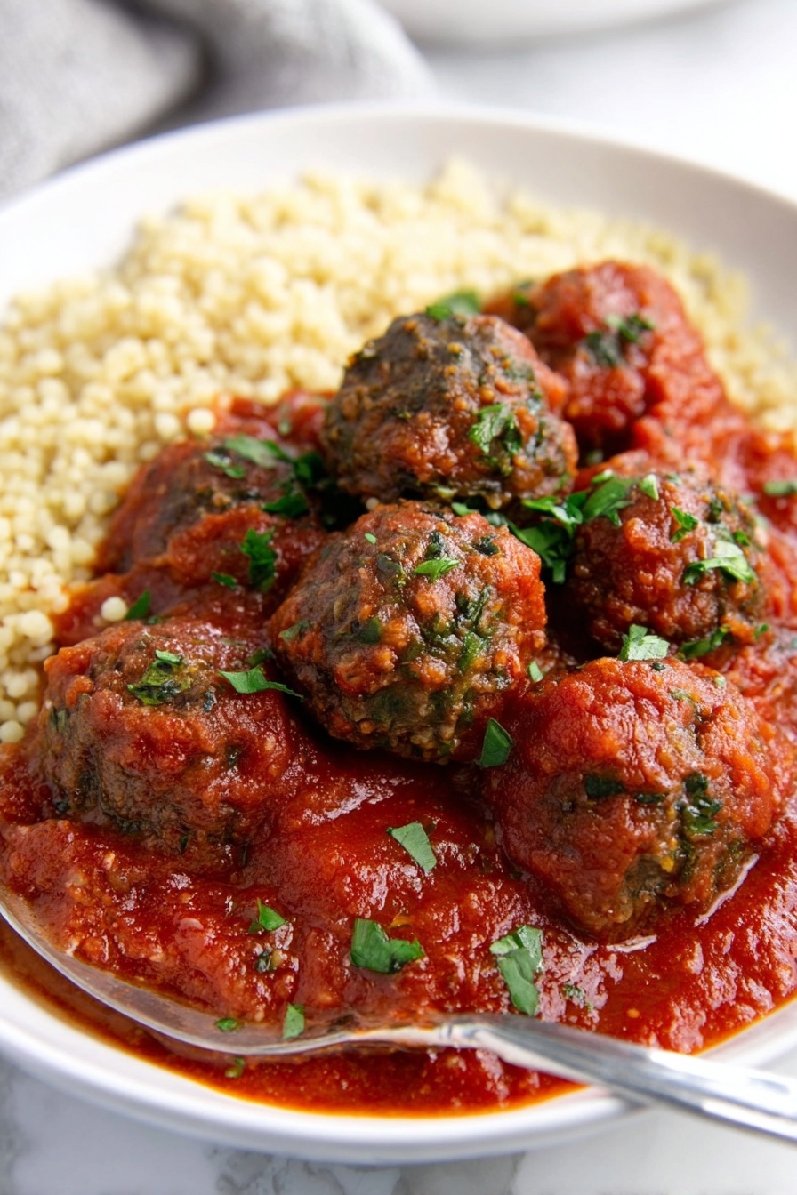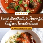 This Easy Lamb Meatballs Recipe with Saffron Tomato Sauce features flavorful lamb and beef meatballs baked to perfection and simmered in a fragrant saffron-infused tomato sauce with warm spices, raisins, and walnuts. Perfect as an elegant yet simple dish that pairs beautifully with couscous or your favorite grain, this recipe combines tender meatballs with a rich, aromatic sauce for an unforgettable meal.