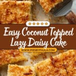 Lazy Daisy Cake is a moist and tender vanilla cake topped with a rich, caramelized coconut and brown sugar topping. This easy-to-make dessert blends the comforting flavors of butter, coconut, and brown sugar, broiled to a bubbly golden finish. Its simple preparation and delightful texture make it perfect for casual gatherings or an everyday treat.