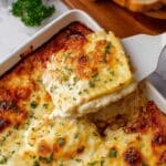 This White Ravioli Casserole, also known as Lazy Lasagna, is a simple yet comforting layered dish featuring cheese ravioli, Italian sausage, creamy ricotta, and rich Alfredo sauce, topped with a blend of Parmesan and mozzarella cheeses. Perfect for busy weeknights, it offers all the indulgence of traditional lasagna with minimal prep and maximum flavor.