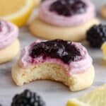 - Frost and Garnish: Once the cookies have fully cooled, spread the blackberry frosting evenly over each cookie. Finish with a small dollop of blackberry jam on top for an extra burst of flavor.
