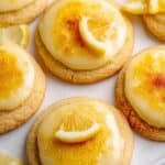 These Lemon Crème Brûlée Cookies combine the zest and brightness of lemon with the rich, smooth decadence of crème brûlée pastry cream, all atop a soft, sugar-dusted lemon cookie. The brûléed sugar topping adds a delightful caramelized crunch, making these cookies a sophisticated yet approachable treat perfect for spring gatherings or elegant desserts.