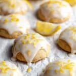 One thing I discovered is that icing doesn’t freeze well—it tends to crack or get crumbly. So if you want to freeze lemon drop cookies, freeze them plain, without icing. Just layer the un-iced cookies with parchment paper between them in an airtight container before popping them in the freezer for up to 3 months.