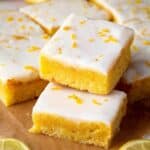 - Apply Glaze and Serve: Pour the lemon glaze evenly over the cooled brownies, smoothing with a mini offset spatula. Let the glaze set, then sprinkle with extra lemon zest. Cut into 16 squares and enjoy!