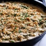 Use whole wheat panko bread crumbs mixed with fresh herbs and a little cheese. Baking uncovered at 400°F helps the topping turn golden and crunchy. If reheating, finish with a quick broil to bring back that crisp texture.