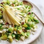 For a special occasion, I’ve arranged this salad on individual plates, layering the Brussels mixture in the center, fanning pear slices beautifully around the edge, and topping it with chunks of blue cheese and bacon bits. It makes for a rustic yet elegant presentation that guests always admire.