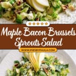 A delicious and savory Maple Bacon Brussels, Pear, and Blue Cheese Salad combining crispy bacon, tender maple-glazed Brussels sprouts, sweet pear slices, and tangy blue cheese for a perfect balance of flavors and textures.