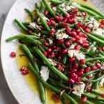 I generally don’t freeze this dish because the texture of blanched green beans and pomegranate arils changes when thawed. If you want to prep components ahead, I recommend freezing the vinaigrette separately and making fresh pomegranate and shallots when ready to serve.