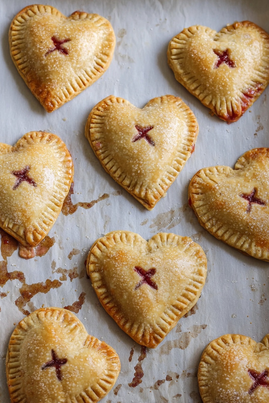 Preheat your oven to 375°F and line a baking sheet with parchment paper. Roll out the chilled dough to about 1/4 inch thick—consistency matters here, so try to keep it even. Use a 2-inch heart cookie cutter to cut out your shapes. Remember, you’ll need twice as many hearts as pies because they sandwich the filling.