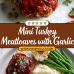 - Serve: Plate the mini turkey meatloaves alongside the roasted garlic cauliflower mash. Complement the meal with steamed green beans or roasted Brussels sprouts for a balanced and satisfying dinner experience. Enjoy!