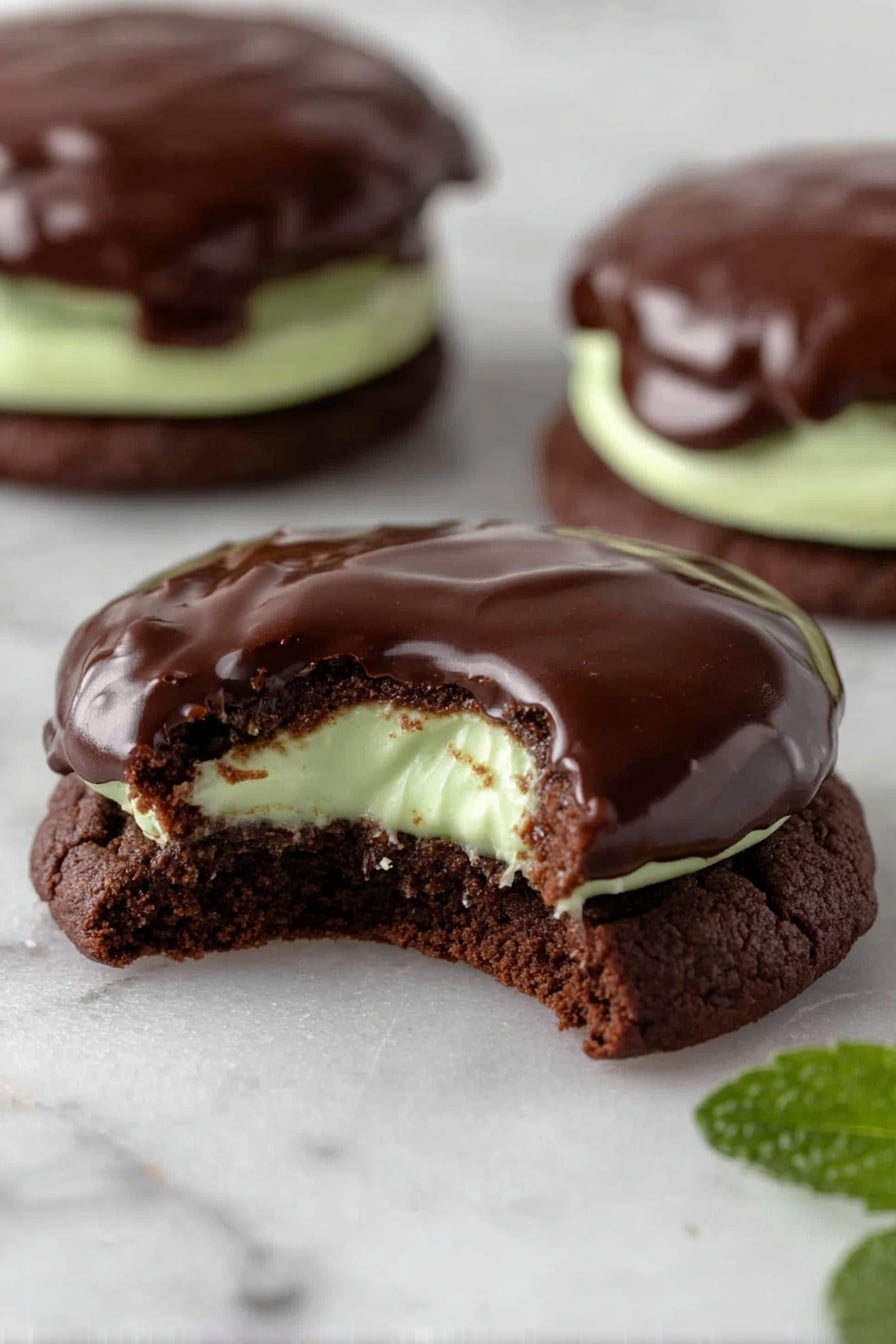 For holidays or parties, I like arranging these cookies on a slate board with sprigs of fresh mint and edible flowers. You can drizzle extra ganache across the plate or serve them stacked in a rustic wooden box lined with parchment—perfect for gifting or a pretty dessert centerpiece.
