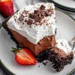This Mississippi Mud Pie is an indulgent layered dessert featuring a crunchy chocolate cookie crust, a fudgy brownie layer, a rich chocolate pudding filling, and a fluffy whipped cream topping garnished with chocolate shavings. Perfect for chocolate lovers, this decadent pie combines multiple textures and flavors to create a show-stopping treat.