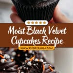 These Moist Black Velvet Cupcakes are rich, deeply chocolatey, and incredibly soft. Made with black cocoa powder, they offer an intense dark chocolate flavor combined with a luscious black cocoa frosting. Perfect for a decadent dessert or special occasion treat.