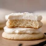 - Frost the Cookies: Transfer the frosting into a piping bag fitted with a large round tip or a ziplock bag with the corner snipped off. Pipe a generous swirl of frosting onto each cooled cookie.