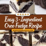 This 3-Ingredient Oreo Fudge recipe is a quick and easy no-bake treat combining creamy white chocolate, sweetened condensed milk, and crunchy Oreo cookies. Perfect for satisfying your sweet tooth without fuss, this fudge sets at room temperature and makes for delightful bite-size squares with a rich, creamy texture and delightful Oreo crunch.