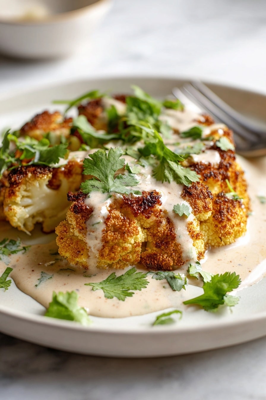 I habitually finish these cauliflower steaks with fresh cilantro because its fresh herbaceousness lifts the dish perfectly. Sometimes I’ll add a squeeze of lemon juice or a sprinkle of toasted pine nuts for an extra texture pop. If you like a little heat, a light dusting of chili flakes does wonders. These small touches take the flavor to another level.