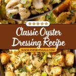 This oyster dressing recipe calls for simple, fresh ingredients that really complement each other. When choosing your oysters, fresh is best, but drained from a good quality can of shucked oysters can work in a pinch.