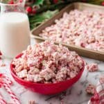 - Add Candy Cane Pieces: Sprinkle the crushed candy canes over the chocolate-coated cereal and stir gently until the candy cane pieces are evenly distributed and adhered to the cereal.