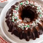 This Peppermint Mocha Bundt Cake combines rich chocolate and coffee flavors with a festive peppermint glaze. Moist and tender, this cake is perfect for the holiday season or any celebration, featuring a luscious chocolate espresso-infused batter topped with a creamy chocolate-peppermint glaze and crushed candy canes for a refreshing crunch.