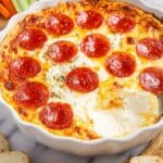 This Pepperoni Cheese Dip Recipe isn’t spicy by default—it’s more savory and cheesy—but you can easily add crushed red pepper flakes or use spicy pepperoni if you want to turn up the heat.
