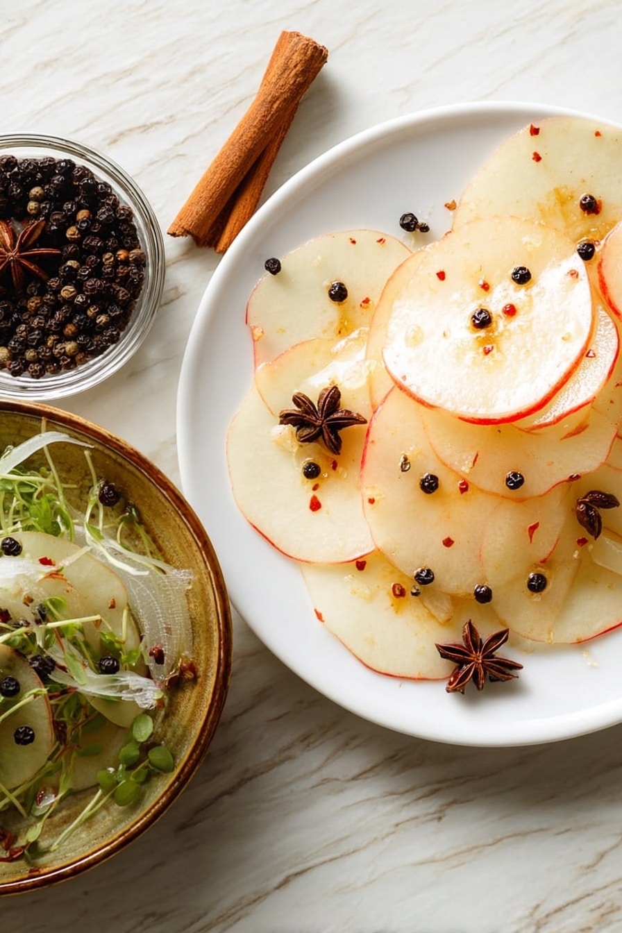 I often garnish these pickled apples with a sprinkle of fresh herbs like thyme or rosemary for a stunning contrast in both aroma and color. Adding a few toasted nuts on top—like walnuts or pecans—gives a lovely crunch and an earthy note that makes each bite even more delightful.