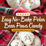 Polar Bear Paws Candy is a delightful no-bake treat featuring a rich caramel and peanut cluster coated in creamy white almond bark and optionally decorated with festive sprinkles. These candies offer a perfect combination of chewy caramel, crunchy peanuts, and smooth white chocolate, making them an irresistible sweet snack or holiday treat.