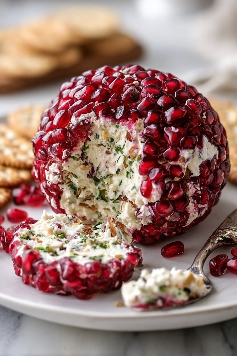- Coat Cheeseball with Arils: After chilling, unwrap the cheese and smooth it into a uniform ball. Spread the pomegranate arils on a plate or baking sheet and roll the cheeseball through them, gently pressing the arils into all cracks and crevices. This creates a jeweled effect and adds a burst of tart flavor.