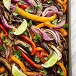 - Serve: Remove the veggies from the oven and serve hot with warmed tortillas, salsa or hot sauce, guacamole, fresh cilantro leaves, and lime wedges for squeezing. Assemble fajitas as desired and enjoy!