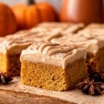 Finally, spread a generous layer of your espresso cream cheese frosting on top using an offset spatula for a smooth finish. Sprinkle a little extra pumpkin pie spice over the frosting for that final fall-flavored pop. Cut into 16 slices and enjoy the flavor party you’ve created!