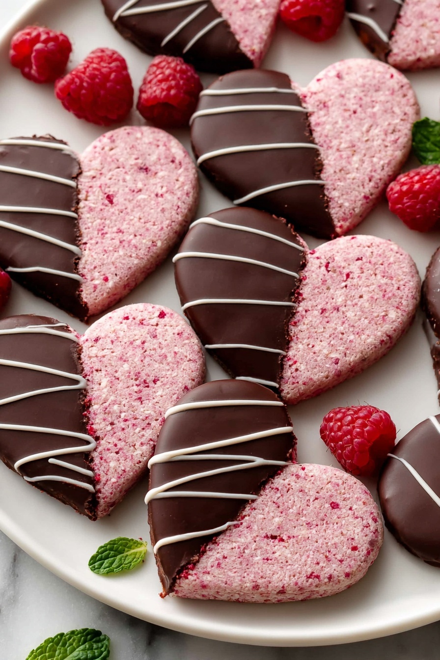 - Optional Chocolate Decoration: Melt chopped chocolate in a double boiler or microwave in 20-second increments, stirring until smooth. Dip or drizzle cooled cookies with melted chocolate. Garnish with extra raspberry powder if desired. Allow chocolate to set in refrigerator for 20–30 minutes or at room temperature.